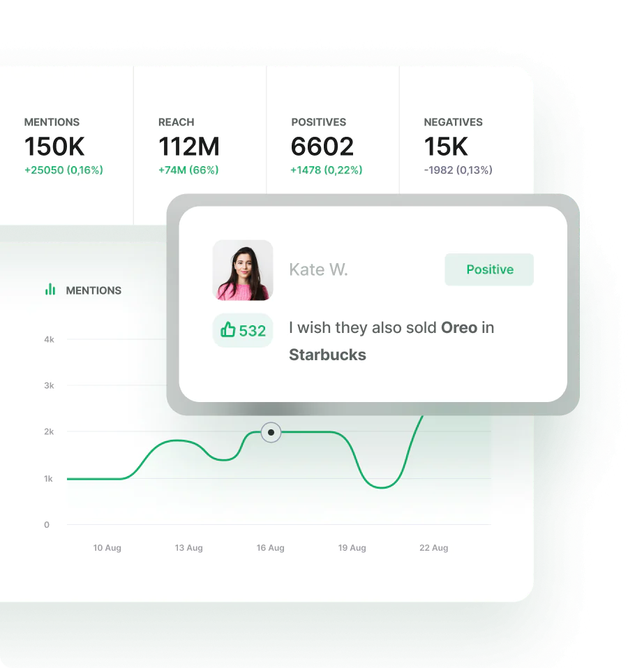 Use advanced sentiment analysis to segment positive, negative, or neutral mentions.